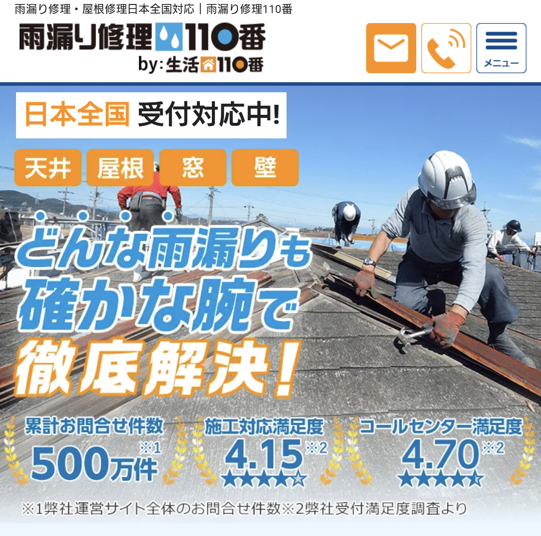 雨漏り修理は専門性がかなり高く、専門業者以外だと不得意領域が出てきてしまいます。