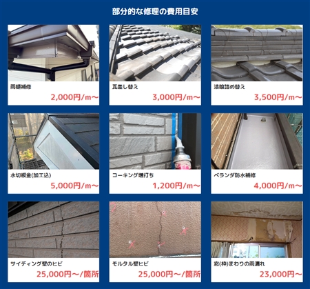 | 屋根板金の浮き・瓦のズレ | 1.5万円〜20万円 |