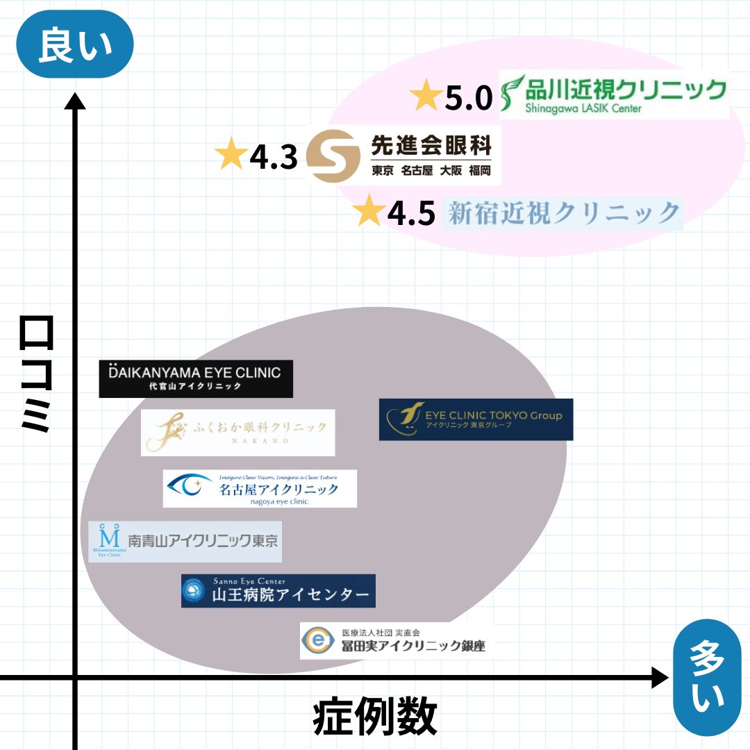 ICLは経験が精度に直結するので、症例数が多いクリニックを選ぶのが鉄則。