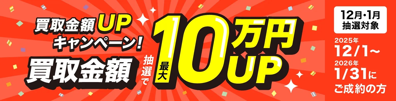 12~来年1月中の申し込み・成約で、買取金額が抽選で最大10万円UPするキャンペーンが開催中!