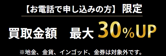 お電話からの申し込みで、買取金額が最大30%UPするキャンペーンが実施中です!