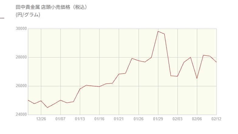 2026年2月に入り、金価格は3万円台から2万6,000〜7,000円台へ急落。
