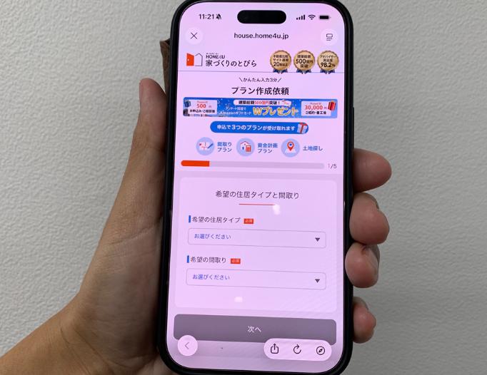 まで無料で出来るのはHOME4U家づくりのとびらです。