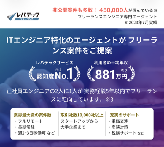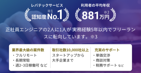 ※5 2022/6/8-11/17のレバテックフリーランスの案件参画者の平均実務経験年数から算出