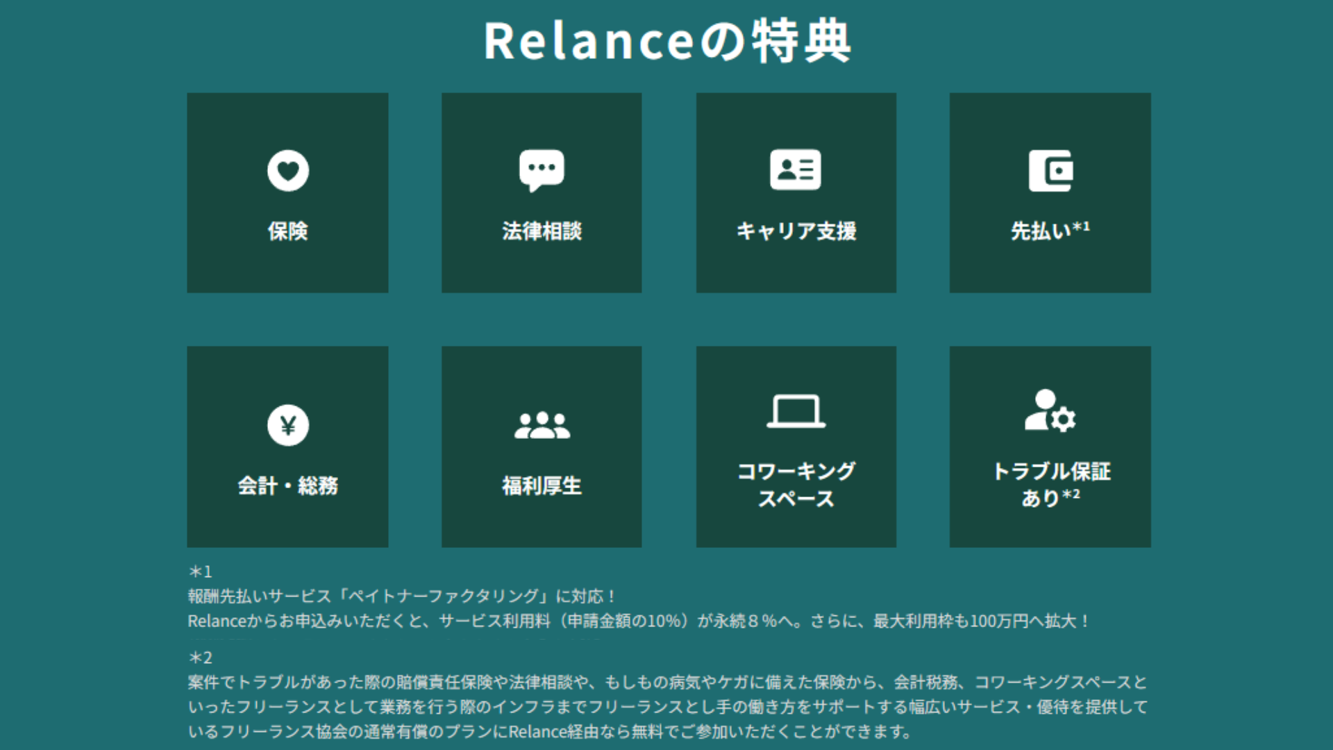 リランスを通して働くと、以下のようなさまざまな福利厚生が特典として受けられます。