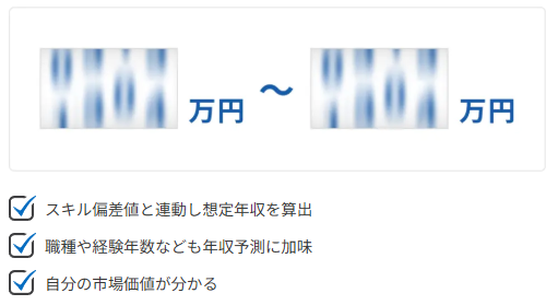 スキル偏差値に加えて、職種や経験年数なども加味して想定年収を算出してくれます。