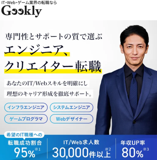Geeklyはエンジニア職に特化しているので、専門的なサポートが受けられてとても良かったです。