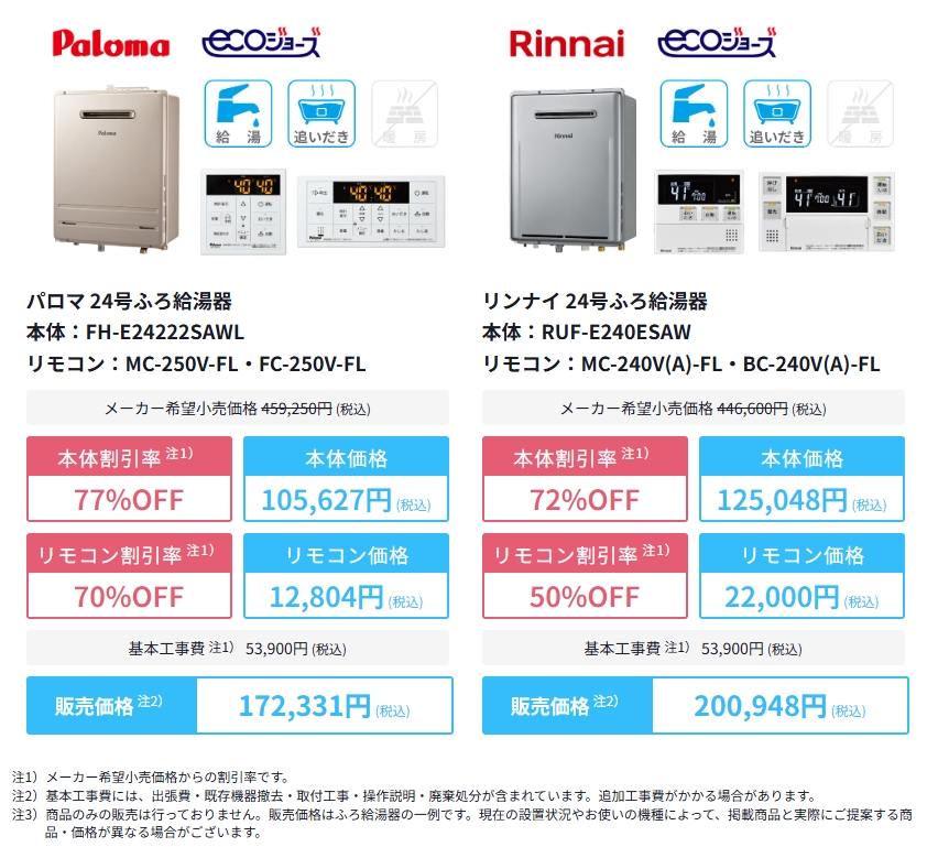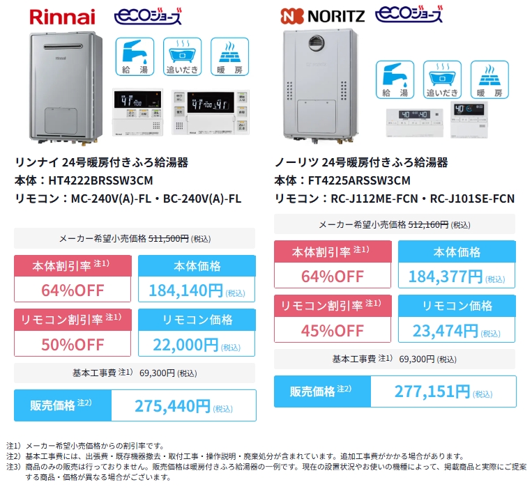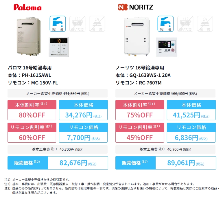 - 給湯器本体最大80%OFF
