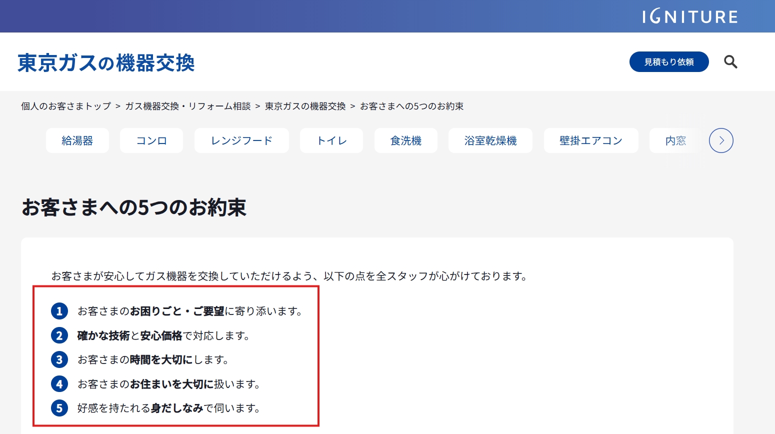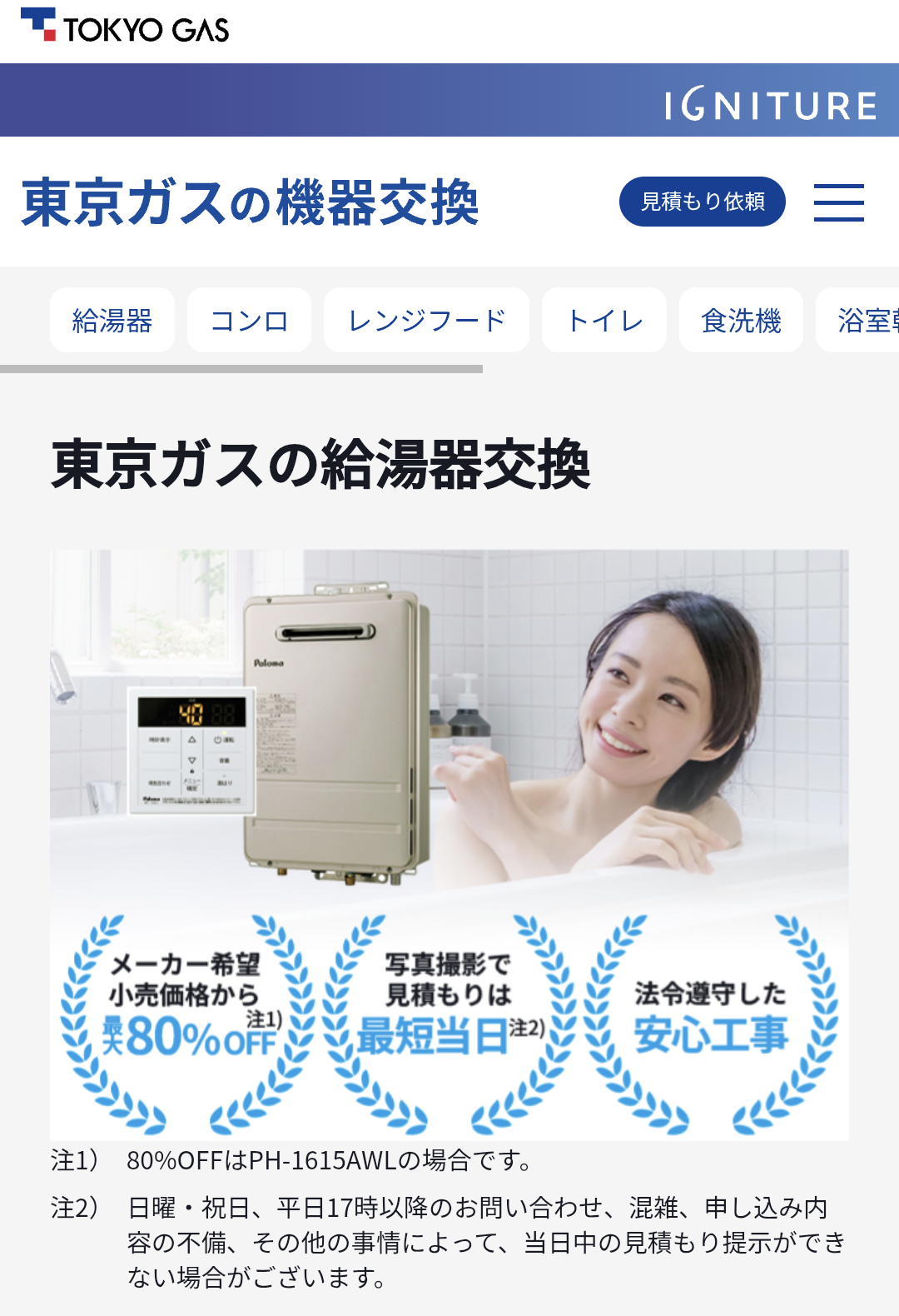 事前見積がWEB完結なので、出張コストをカット!大手ガス会社でありながら、ネット業者並みの低価格を実現しています。