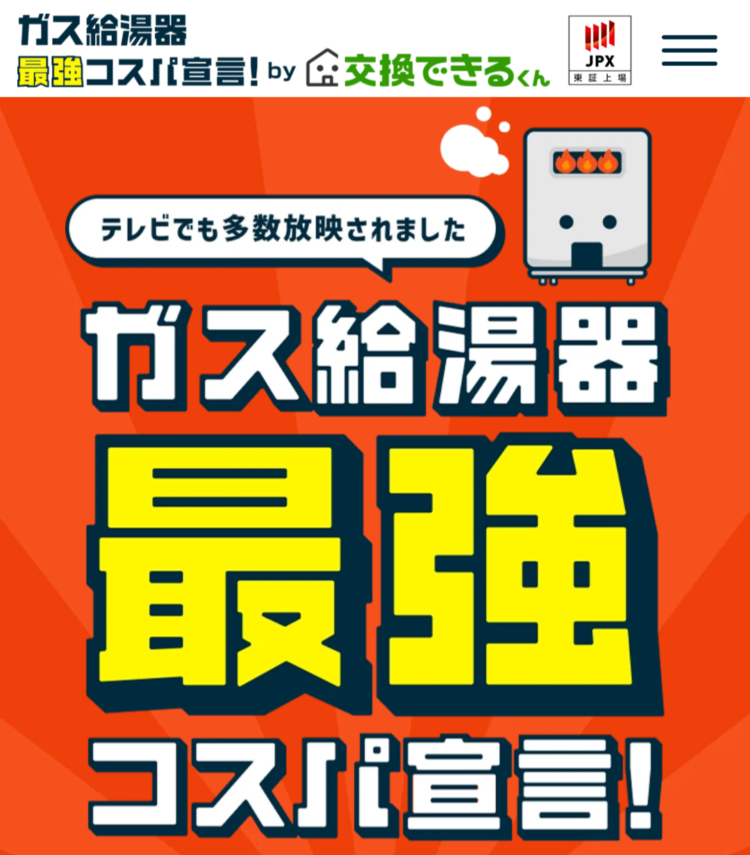 給湯器交換業者でもめずらしい、上場企業の業者となっています。