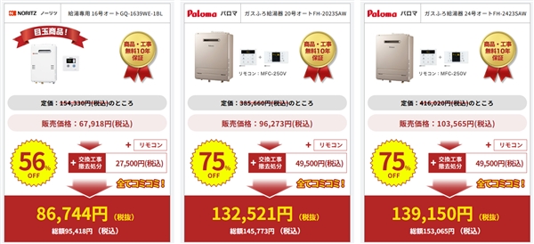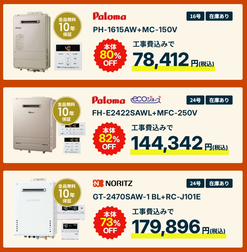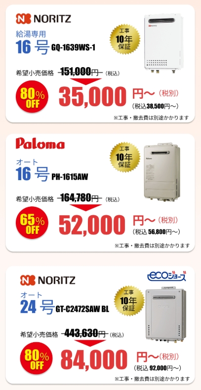 給湯器本体は業界最大の割引率!破格のコスパを誇る業者です。