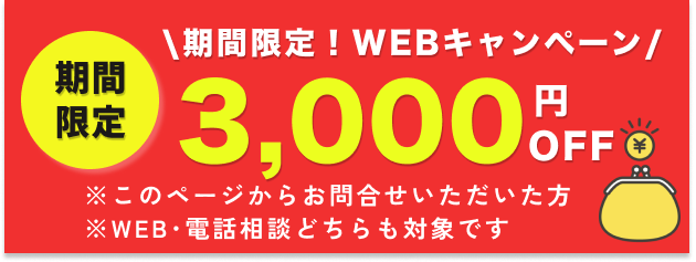 WEB申込で料金が3,000円OFFになるキャンペーンが実施中です!