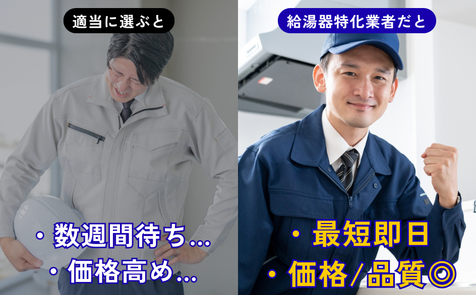 - 即日で給湯器を交換してほしい人
