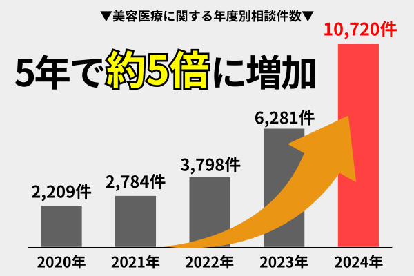 消費生活センター等には、美容医療に関するトラブルが年々増加しています。